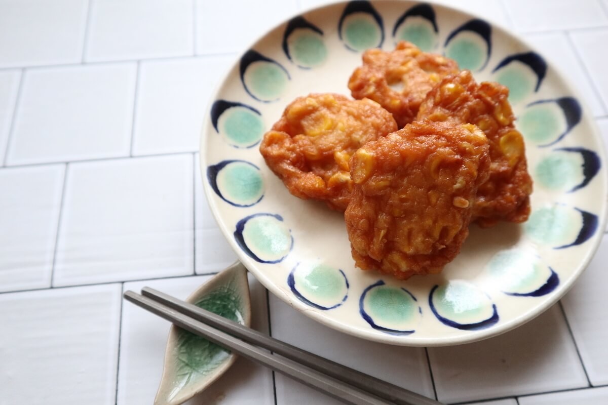 シャキシャキのトウモロコシとふわふわのすり身で食感の楽しい1品です。