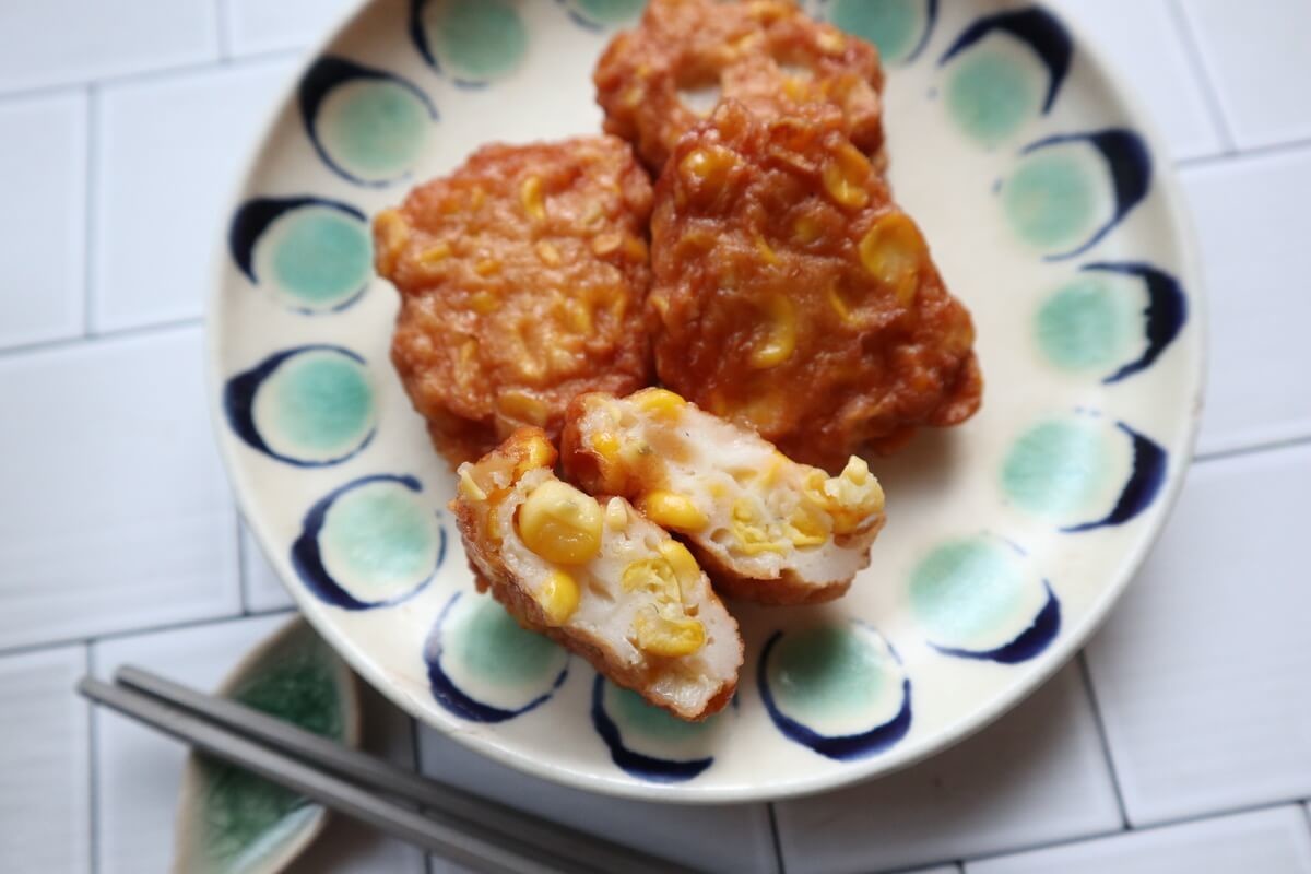 北海道産のトウモロコシと魚のすり身を合わせて揚げた、ふわっふわのさつま揚げです。