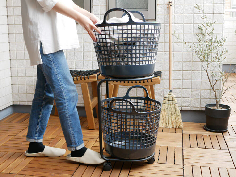 大容量のバスケットが2段あるので、連日お天気が悪く洗濯ができない日でも溢れる心配はせず、いっぱいの洗濯物でも色分けなど分別可能なのが2段のいいところです。