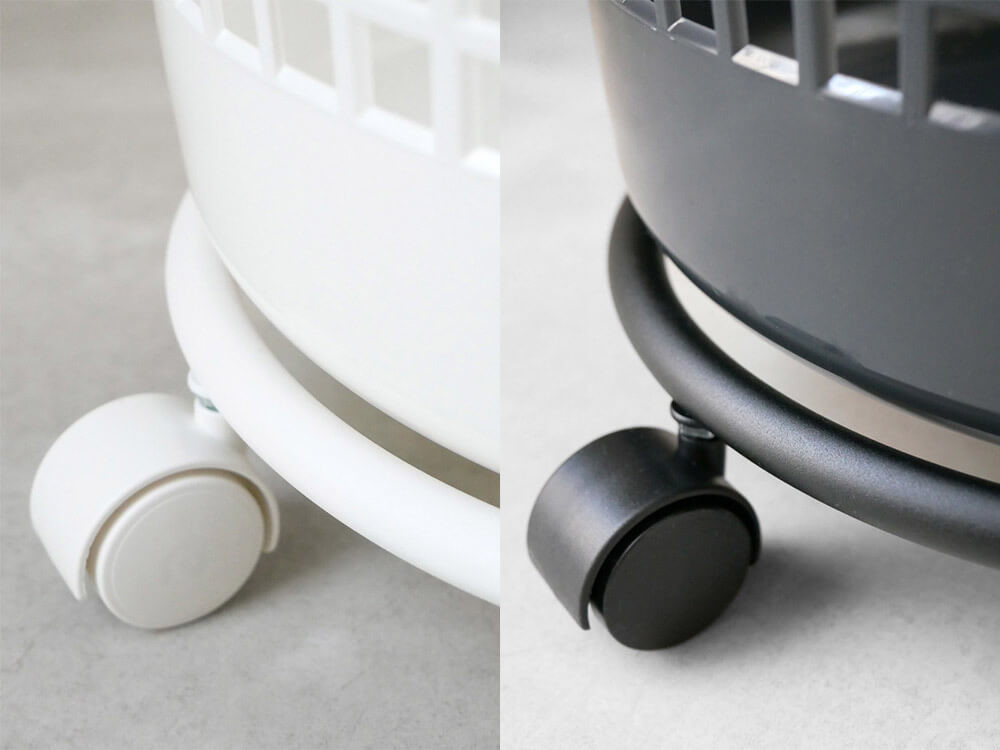 バランスのとれる3個のキャスターなので、バスケットを乗せたままでも移動ができるから楽ちん。