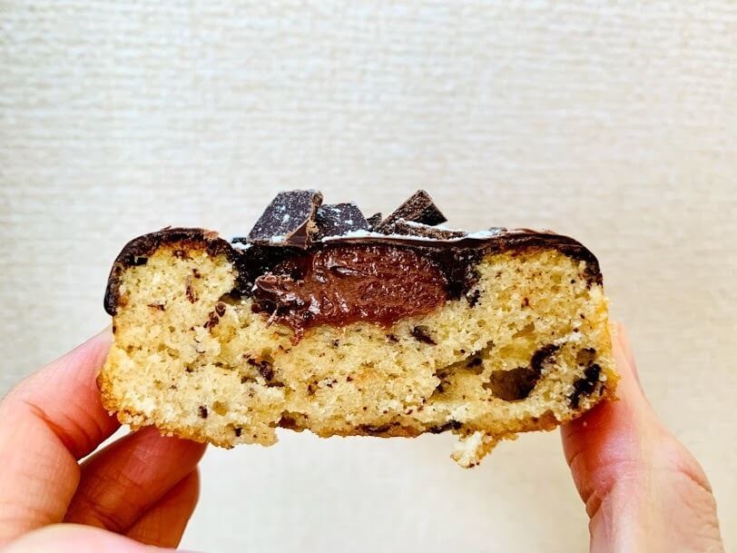断面です。生地の中でほどよく溶けたチョコレートが見えています。