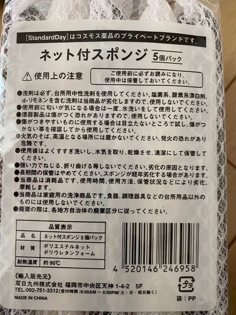 至って普通のネットスポンジですが、この価格に本気でビックリ。そりゃもう2個買いですよ。