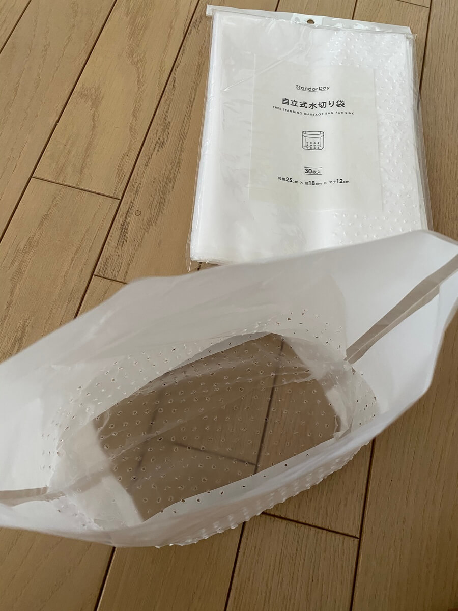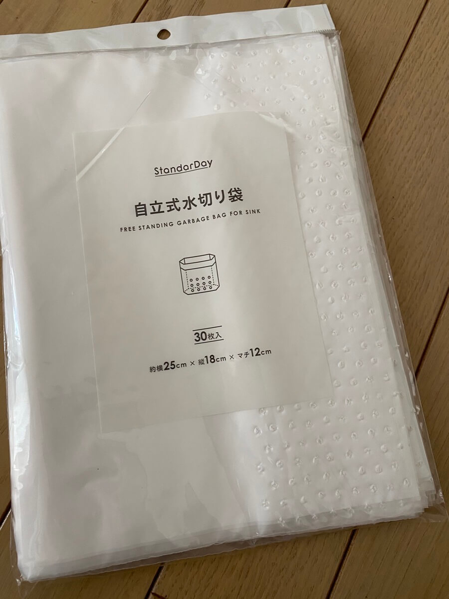 これも、水切り袋マニアのわたしには気になるアイテム。笑。 真っ白の袋が30枚。お値段は198円。税込です。
