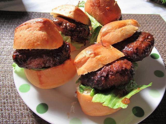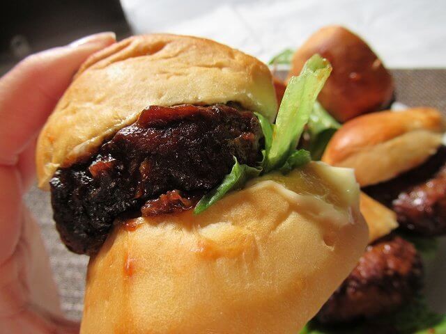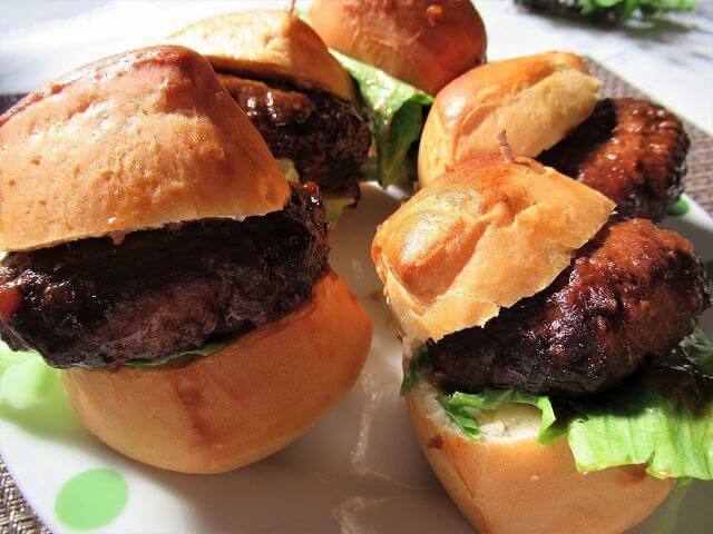煮込みハンバーグ(デミグラスソース)を使用したミニハンバーガー