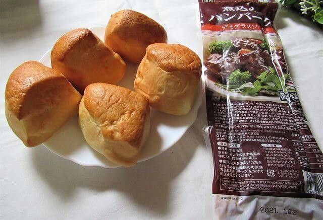 パンにレタスと煮込みハンバーグデミグラスソースを挟むだけの簡単メニューです。