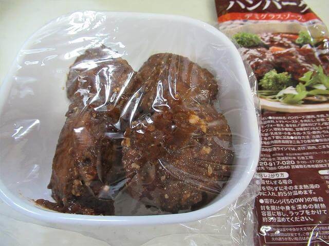 煮込みハンバーグ(デミグラスソース)は、温めるだけで食べられる商品です。温め方は2つの方法があります。