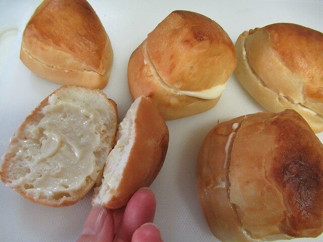 今回私が使用したのはコストコのディナーロールですが、ホットドッグ用のパンやベーグル、ロールパンなどご自宅にあるパンをご使用ください。