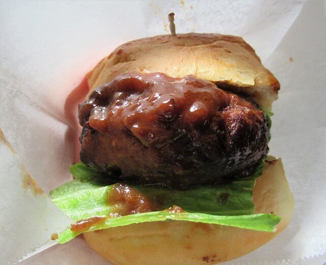 注意点としては、煮込みハンバーグが思った以上に分厚いので、ワックスペーパーなどで包むと食べやすいと思います。