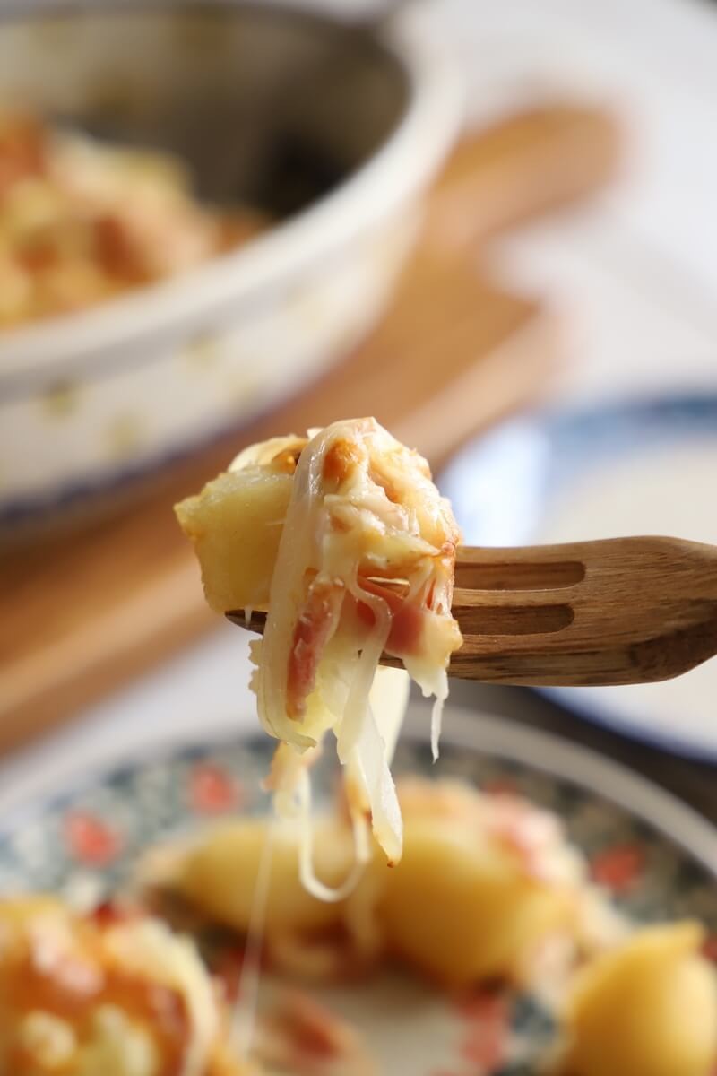 玉ねぎをさっと炒めたのでシャキシャキ感が残っており、もちもちのいももちとの食感の違いが楽しいです!