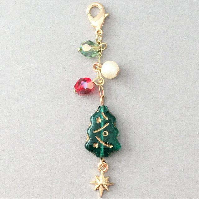 最後にご紹介するのは、透明感のある大粒のもみの木モチーフのクリスタルビーズがあしらわれているクリスマスチャームです。
