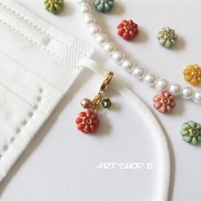 ヨーロッパの伝統工芸でもあるチェコビースがメインにデザインされているマスクチャームです。とても小ぶりなチェコビースなので、さり気なくおしゃれを楽しみたい方にピッタリ。