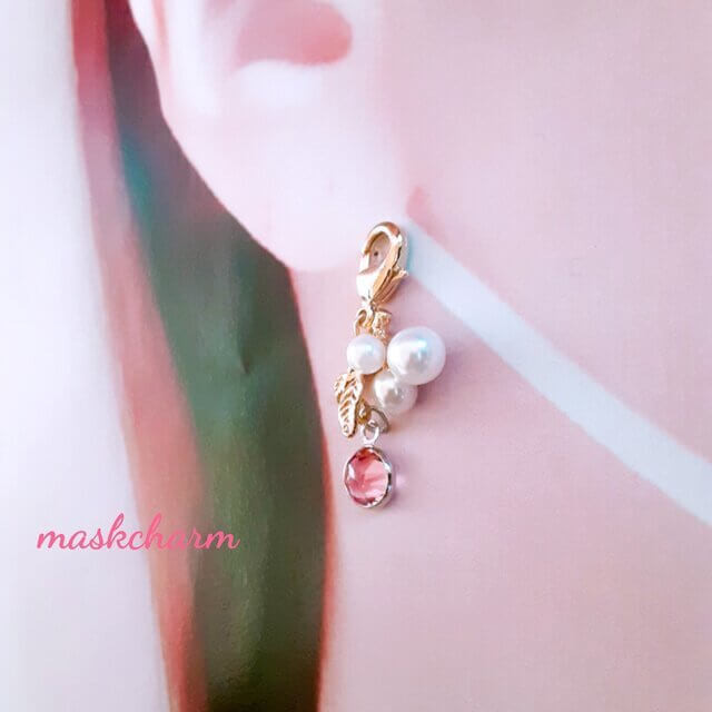 サイズも小ぶりでピンクパールが使われているため「大人かわいい」チャームを探している方におすすめです。マスク紐の下側、耳寄りに付けるとピアスのようにも見えるのでおしゃれですよ♪