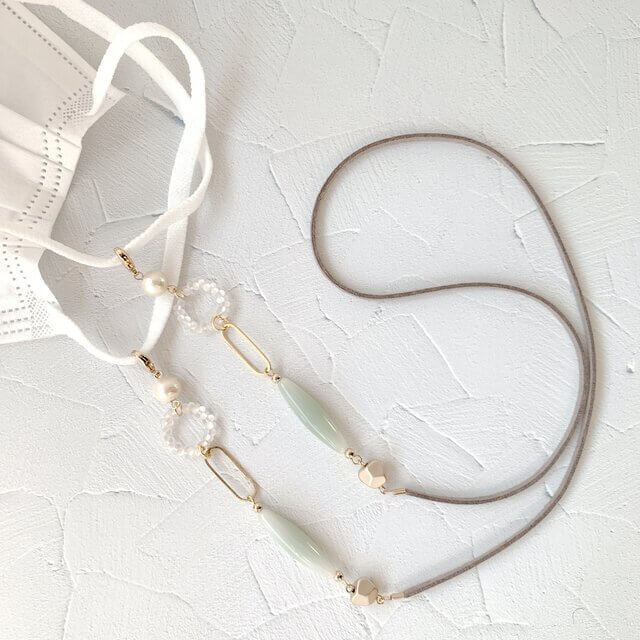 こちらのマスクストラップは、そこにゴールドパーツを使うことで、さらに上品さがプラスされていますね!