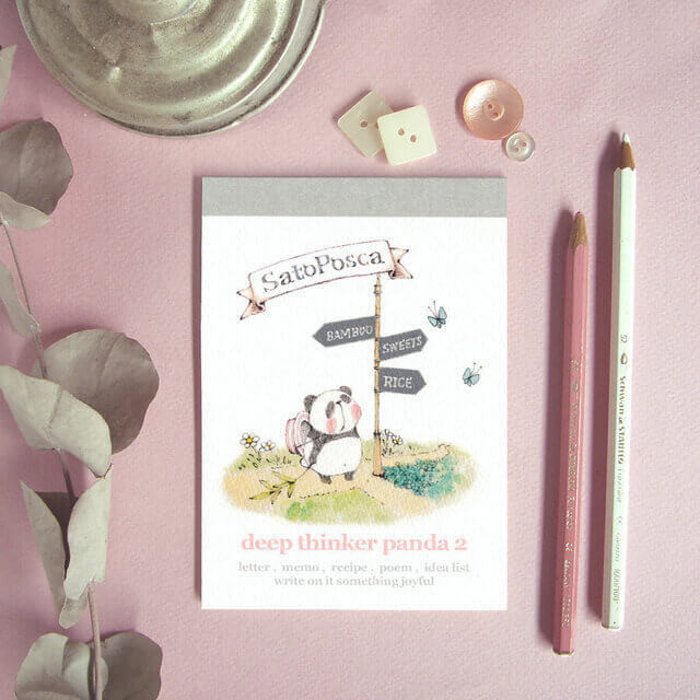 こちらは、優柔不断な姿もかわいく見える悩めるパンダちゃんがデザインされているメモ帳です。