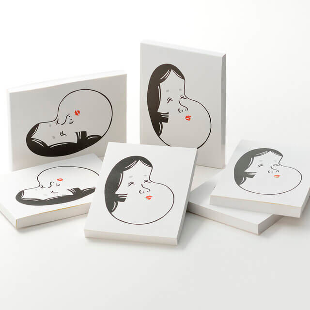 お多福とは頬が膨れている様子を示すとも一説にありますが、多くの福を呼ぶ顔という意味が「おたふく」の語源の有力説とされています。ということは、ご利益のあるメモ帳ですね♪