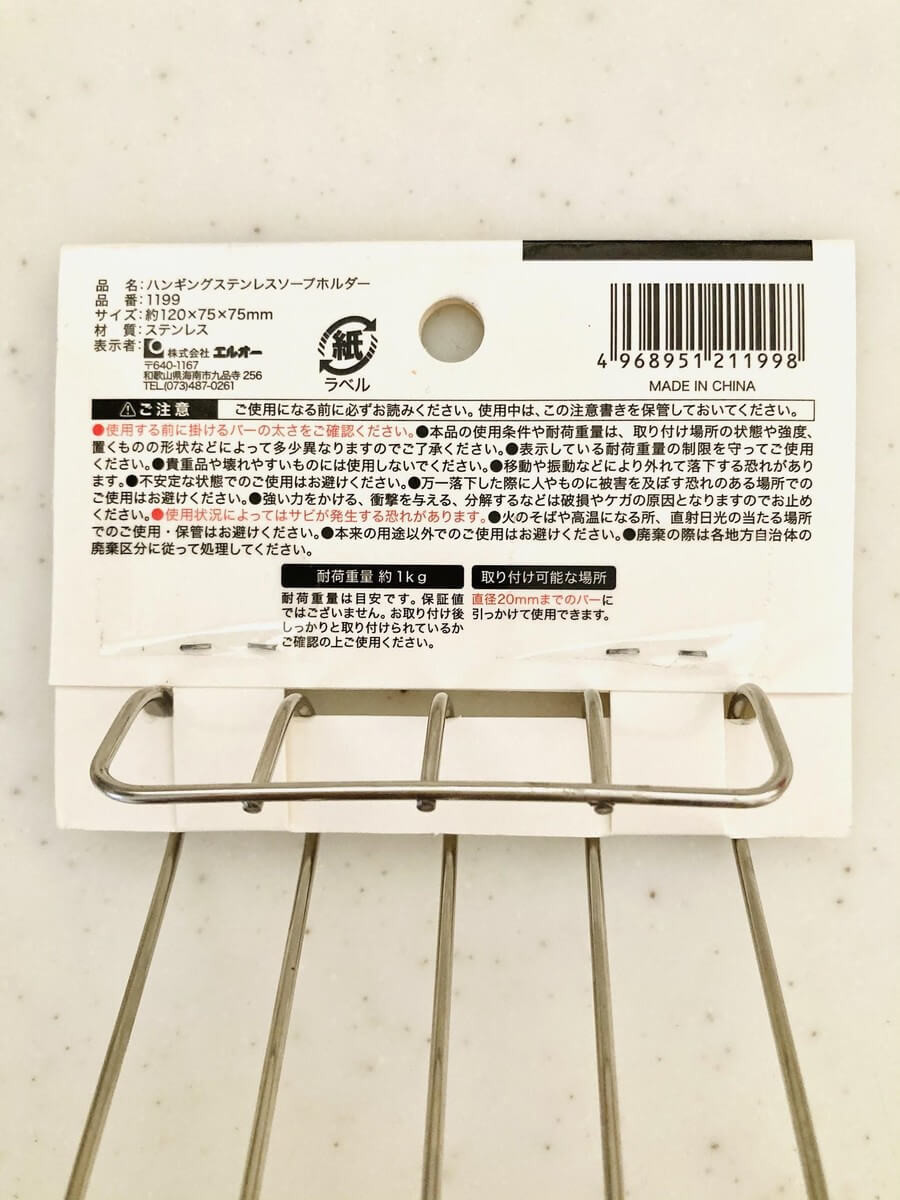 耐荷重は約1kgと、ソープホルダーにしては十分すぎる丈夫さです。ステンレス素材なので強度がありますね。