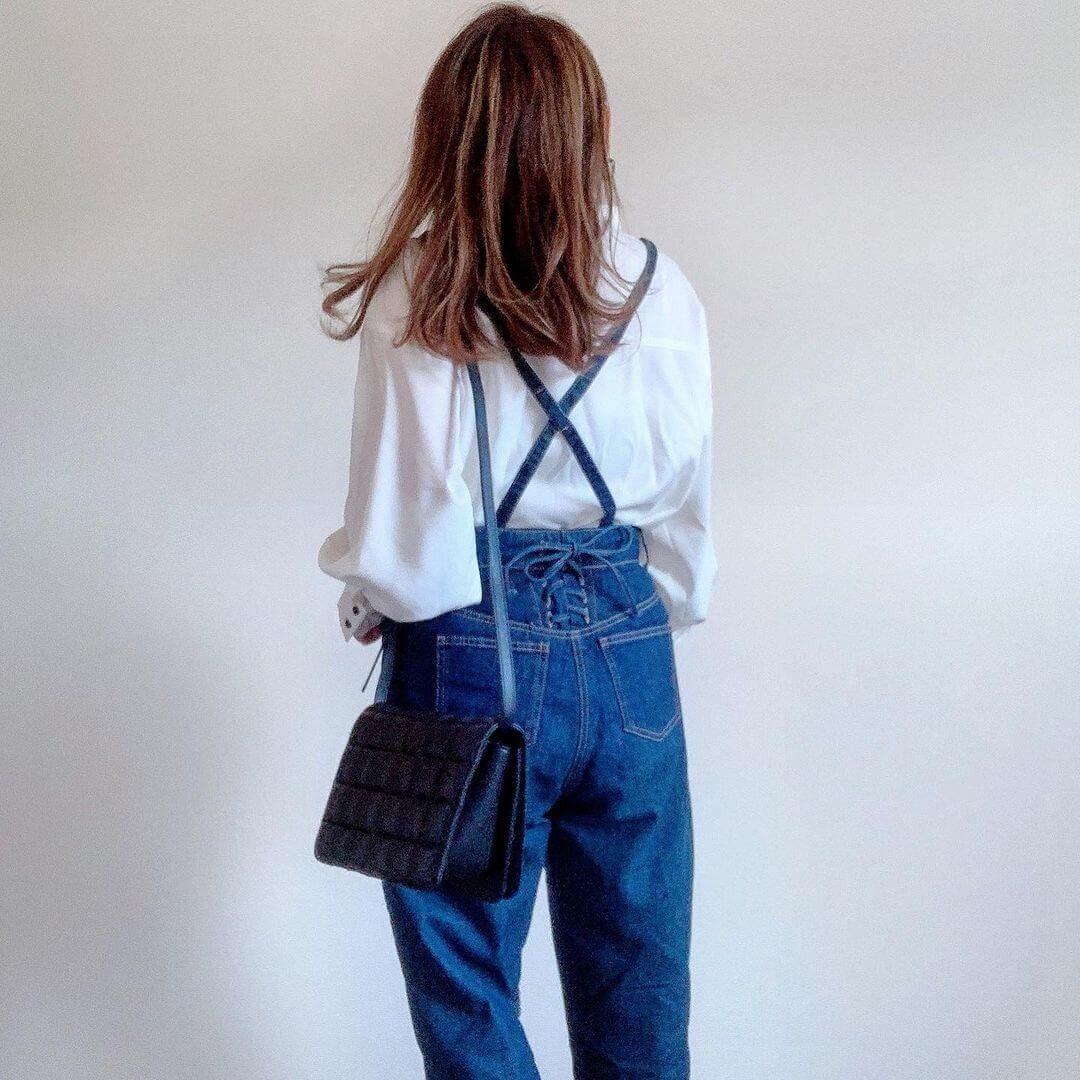 サスペンダーを取り外して、スタンダードなデニムパンツのようなコーデも楽しめます。