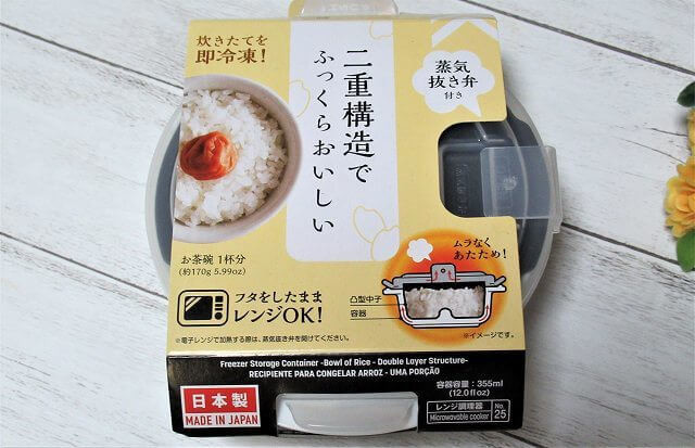 ダイソーの冷凍保存容器ごはん一膳は、容器が2重になっているため粗熱をとらずに炊きたてのご飯をすぐに冷凍庫に入れて保存することができます。