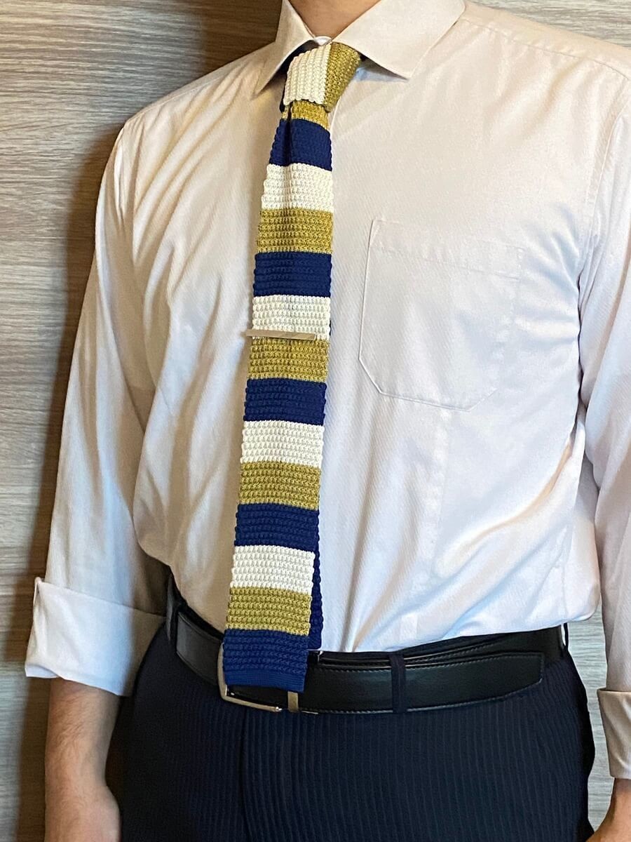 実際にダイソーのニットタイをしてみたところ、200円とは思えないクオリティーの高さ!