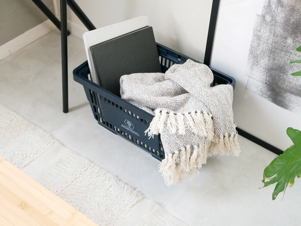 スタッキングもキレイ!ちょい置きに使える「部屋隅バスケット」はレジカゴにもなる便利屋さん