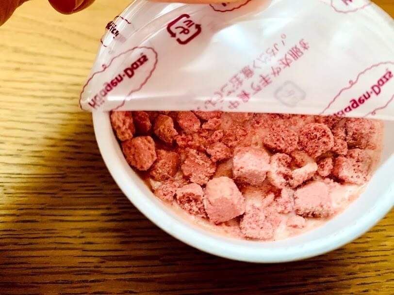 通常のハーゲンダッツ同様、フィルムでしっかりと密封されています。