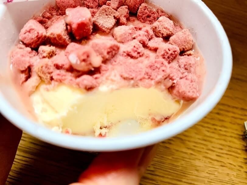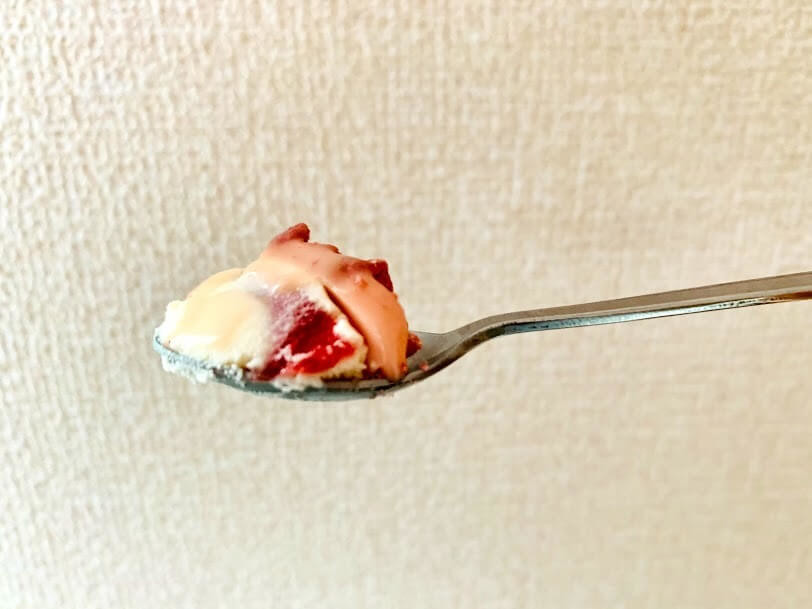 フロマージュアイスクリームはさすがダッツ様、なめらかでまろやかで最高のくちどけ。フロマージュアイスだけを食べるとまろやかなチーズのコクを味わえます。