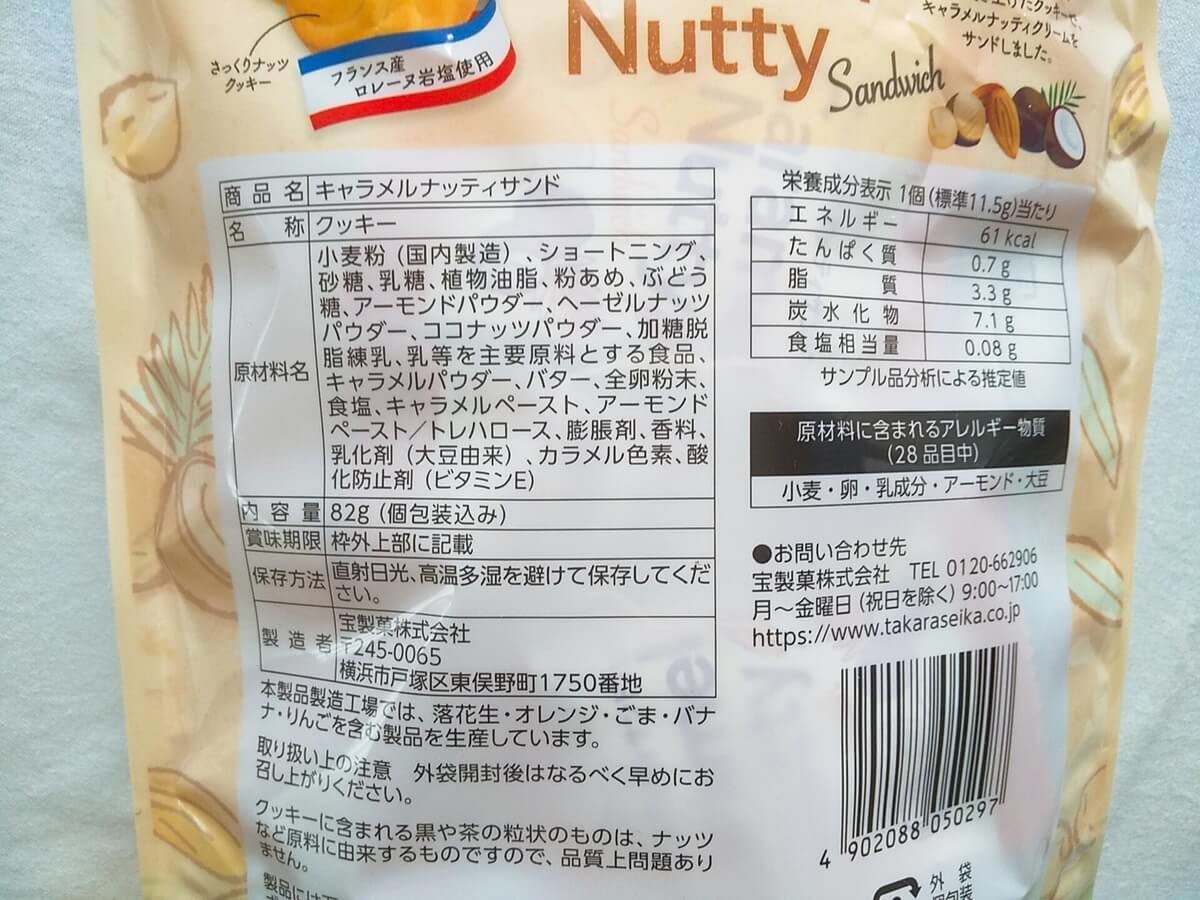 原材料には「キャラメルパウダー」や「キャラメルペースト」の表示がありますが、キャラメルの風味はほんのり程度で、主役はあくまでナッツの豊かな風味です。