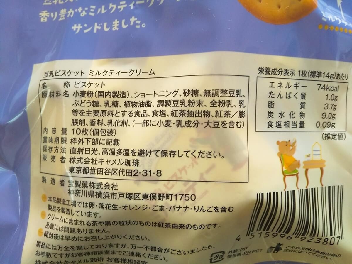ホッとまろやか「豆乳ビスケット ミルクティークリーム」
