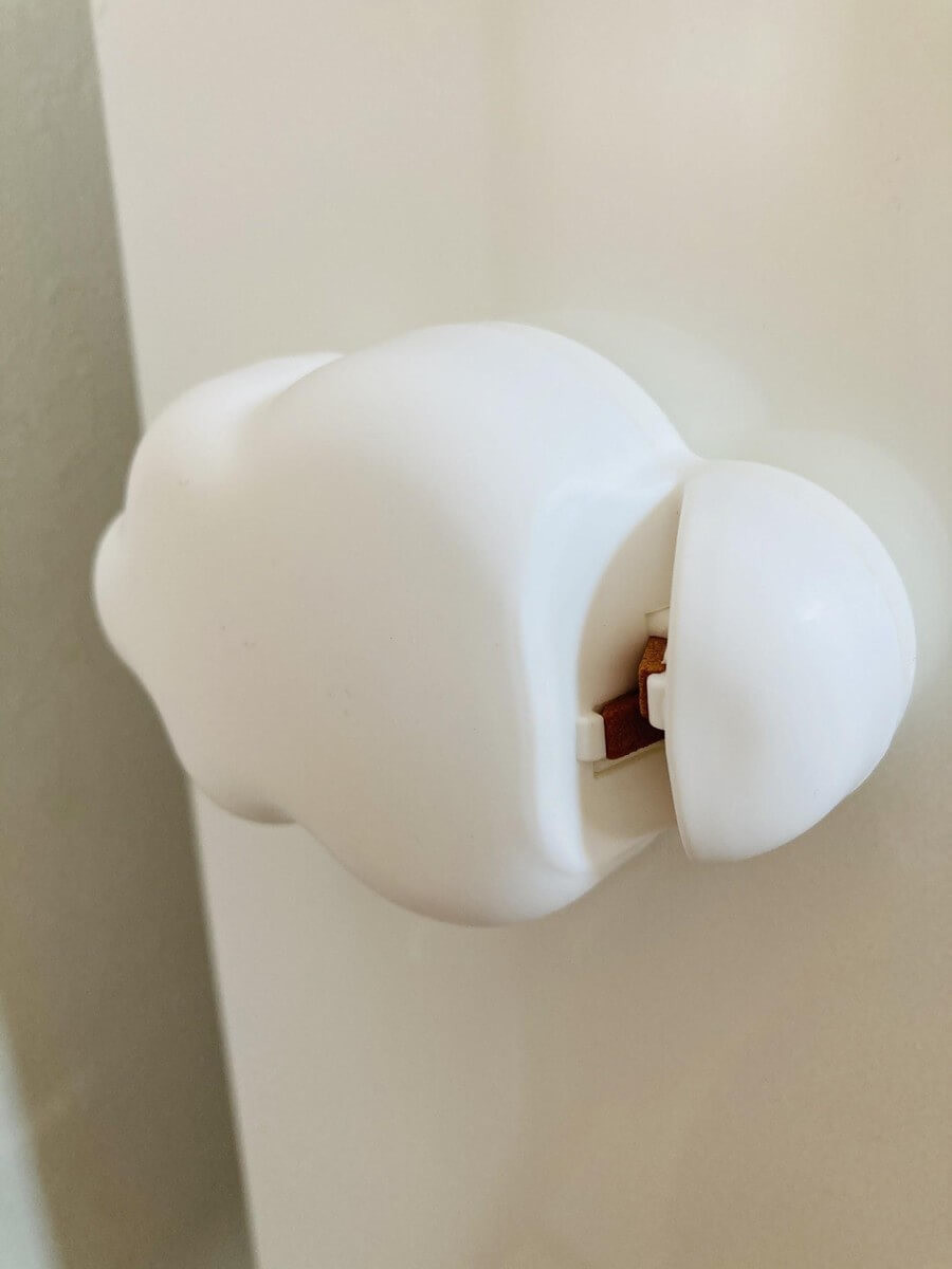 こんな感じで、手元に届く位置に置いておけるのもうれしいポイント。冷蔵庫に付けておいても可愛いので、包丁研ぎとは思えません。流し台のそばに付けたい場合は、マグネットシートを貼って付けるのもいいですね。