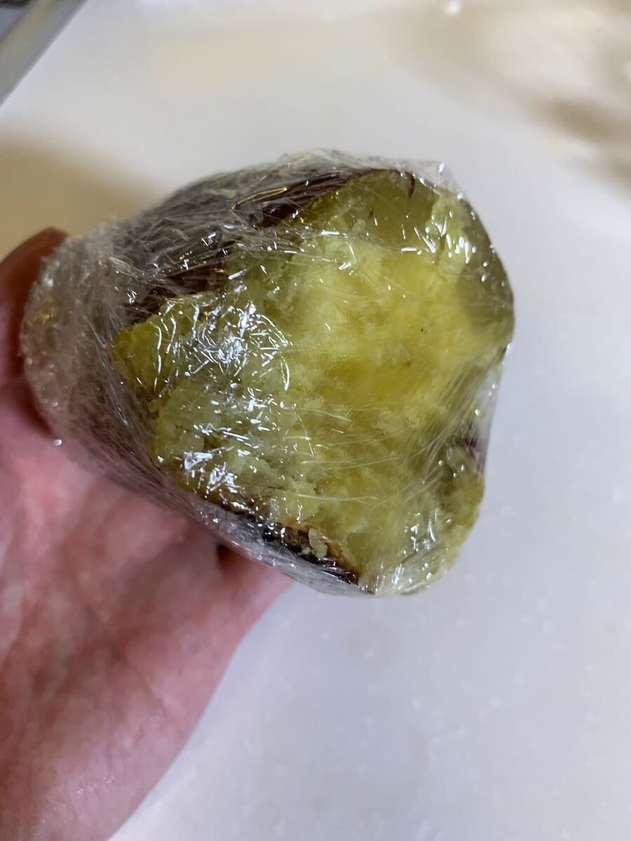 さつまいもを少し冷ましてからラップに包みましょう。冷まして粗熱を取ってからでないと、いも自体の味も落ち、冷凍室の温度が上がってしまいます。