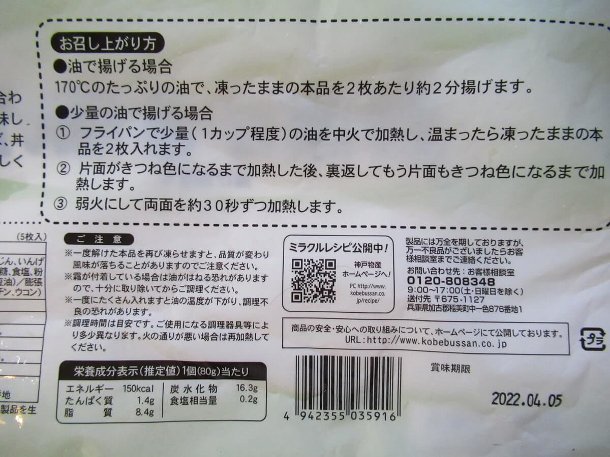 と、パッケージの裏には書いてあります。どちらにしても油で揚げ直すことが必要です。