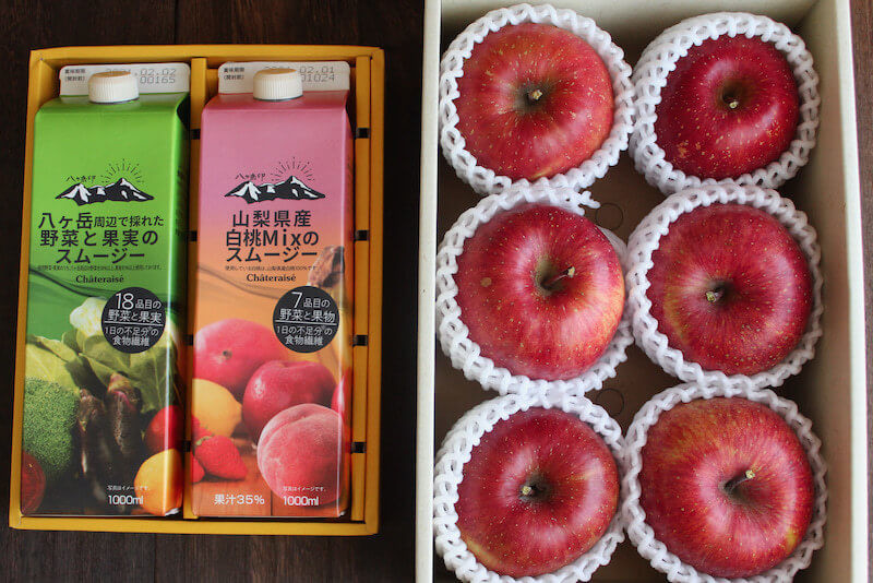 ちなみに、津金りんごとスムージー詰合せをギフトにして、他のものを自宅用ににするのも いいかもです。