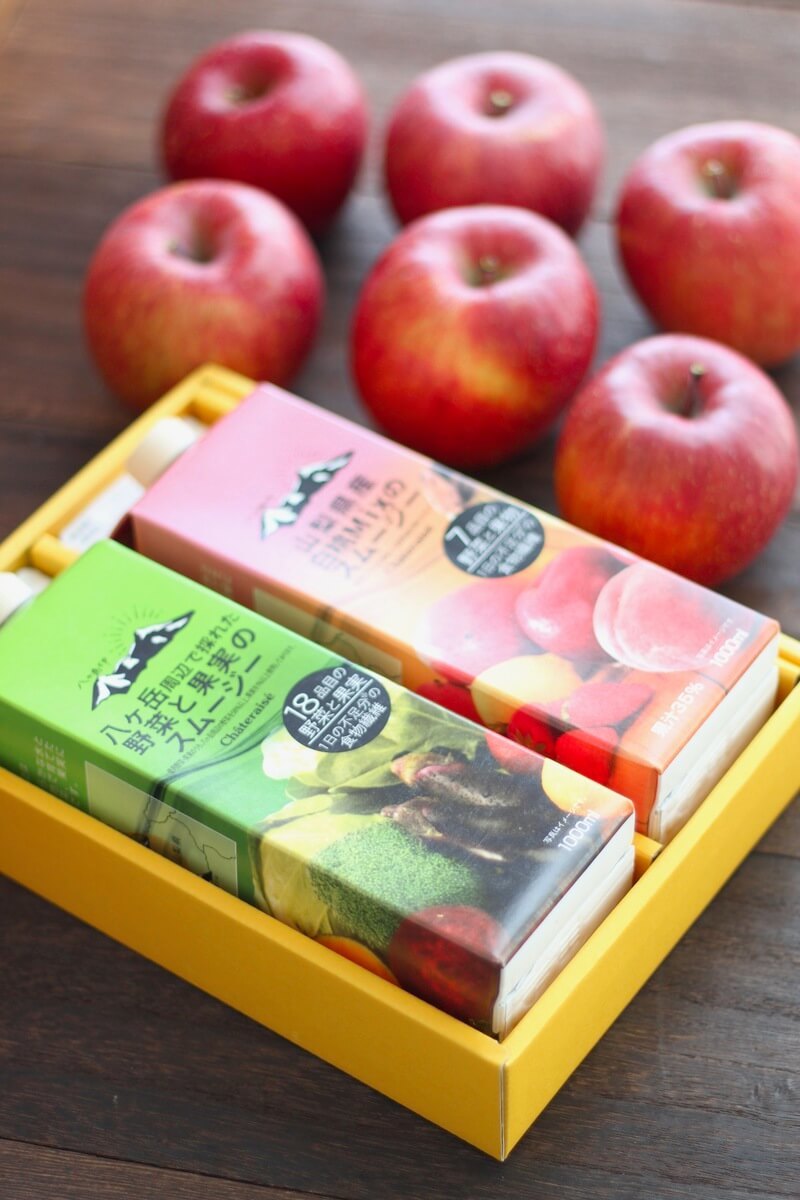 というわけで、今が旬の「津金りんご」と 八ヶ岳産の野菜や果実をまるごと絞った「スムージー」のセット♡