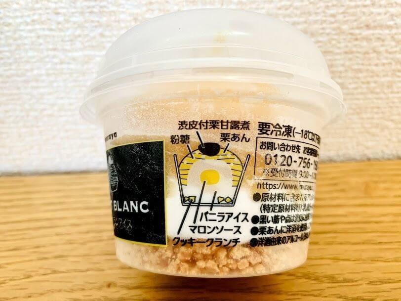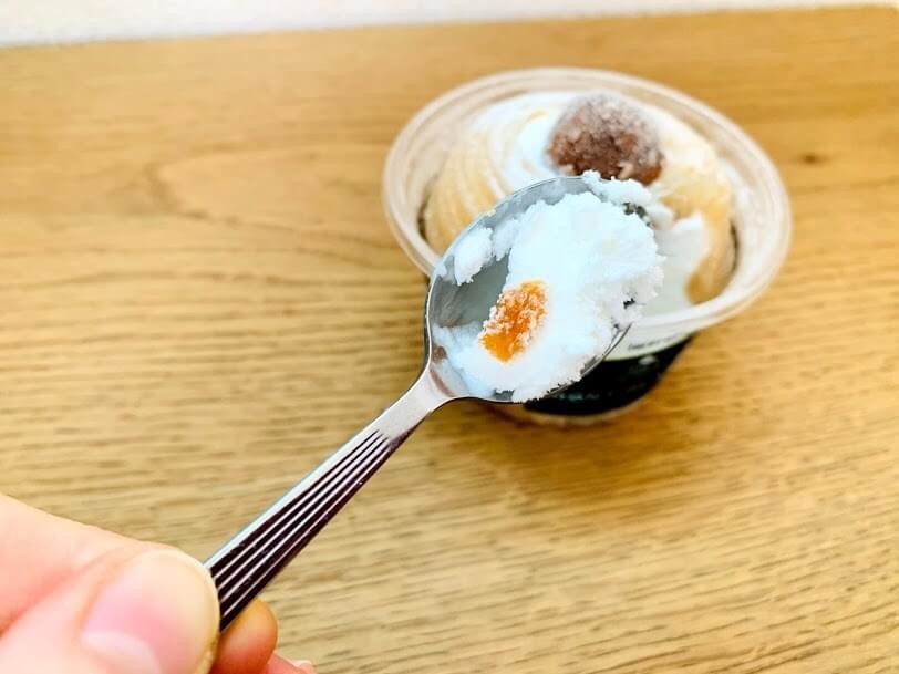 全部栗あんなのではなくバニラアイスの上をコーティングしている感じです。薄くかけられていますが存在感はばっちり。