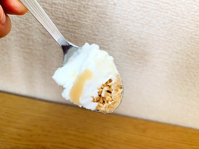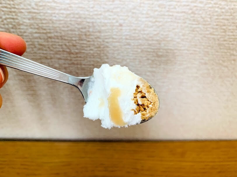 一番下に敷き詰められたクッキークランチですが、これいいですね。クッキーほどドシンと重たくなく、サクサクカリカリとした軽い食感。香ばしいのでアイスの味が変わりとっても楽しい。クランチだけでも美味しい。