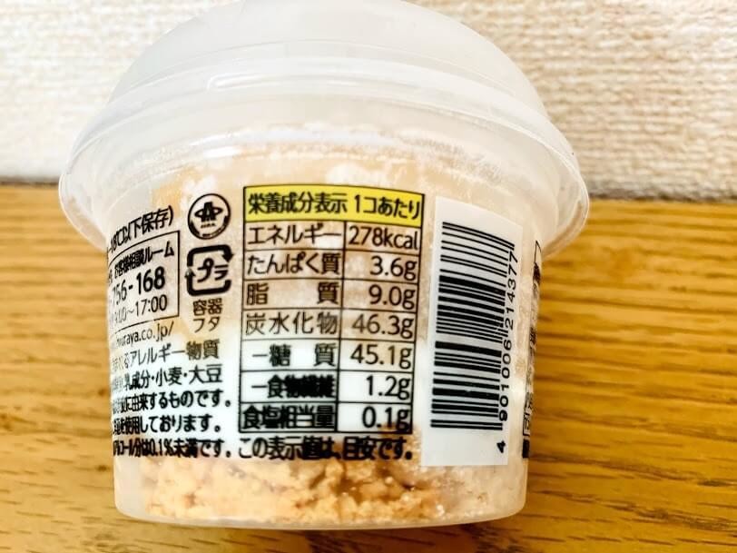 278kcalです。たっぷり入っているので300kcalくらいあるかな?と思っていましたが、ラクトアイス規格ということもあり300kcal以下です♪さっぱりな部分と濃厚な部分とのバランスが最高です。