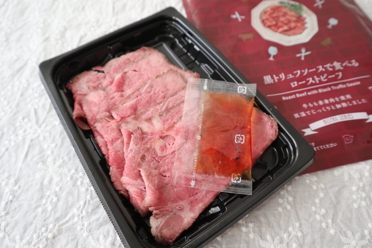 黒トリュフソースで食べるローストビーフ(冷凍)369円。