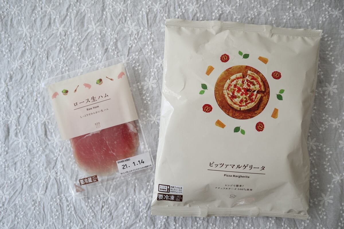 ピッツァマルゲリータ(冷凍)276円。ロース生ハム139円。
