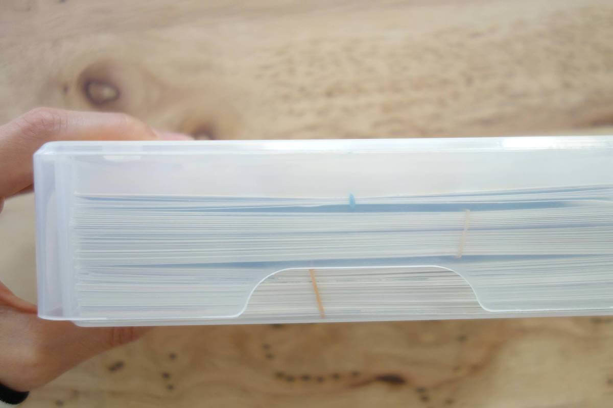 外寸の高さが2cmアップして最大7cmに。最大270枚収納できるようで、年賀状がたっぷり入ります。