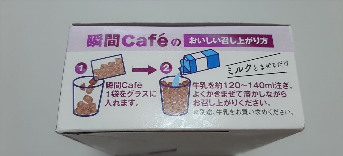 つくり方は本当に簡単。パッケージにも説明が書いてあるように瞬間Cafeをグラスに入れたら牛乳を注ぐだけ。