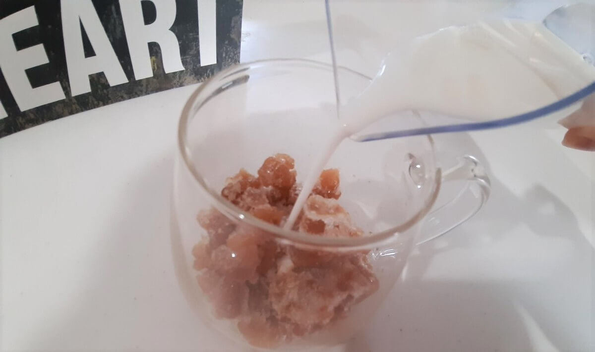 パッケージには120~140mlの牛乳を入れると書いてあったので、今回は間をとって130ml注ぎます。濃いめが好きな人は牛乳少なめでもOK。目分量でも大丈夫ですよ!
