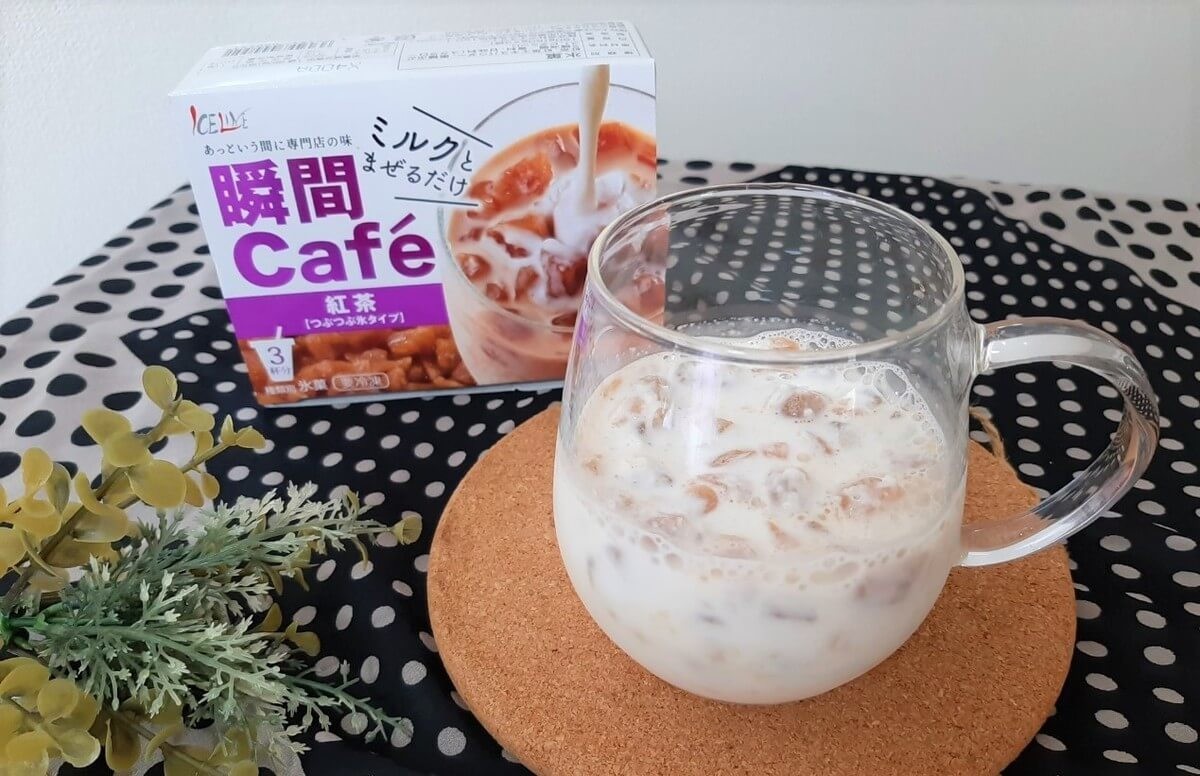 パッケージの写真よりも牛乳っぽい色合いになりましたが、溶けてくるとしっかり紅茶の風味が楽しめるドリンクでした。