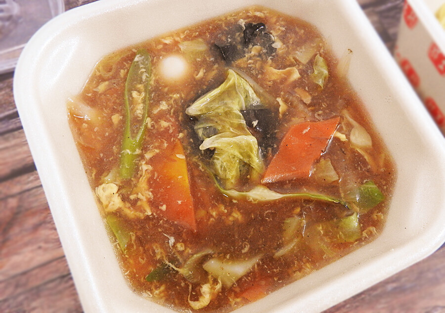 麺は温め直してもほぐれませんでしたが、あんかけスープと混ぜているうちにほぐれましたよ。