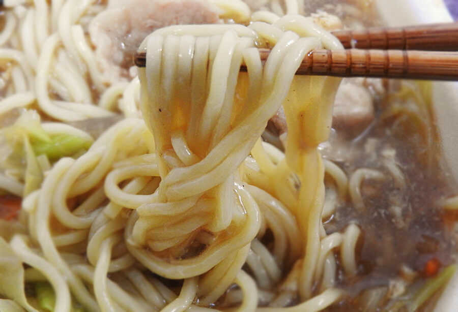 あんかけスープはほのかにしょうががきいていてよいアクセントに。とろみのあるあんかけスープですので、麺とよく絡み合って一体感のある味に仕上がっています。寒い時期に食べる温かいあんかけラーメンは、最高ですね!