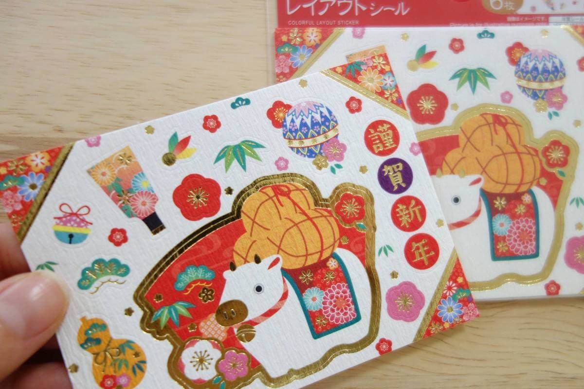 他の年賀シールと組み合わせて使ってみると年賀状が一気に華やかになりました。
