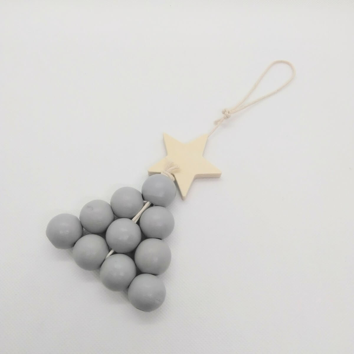 木と優しいグレーがあったかい雰囲気の北欧風ツリーオーナメントです。