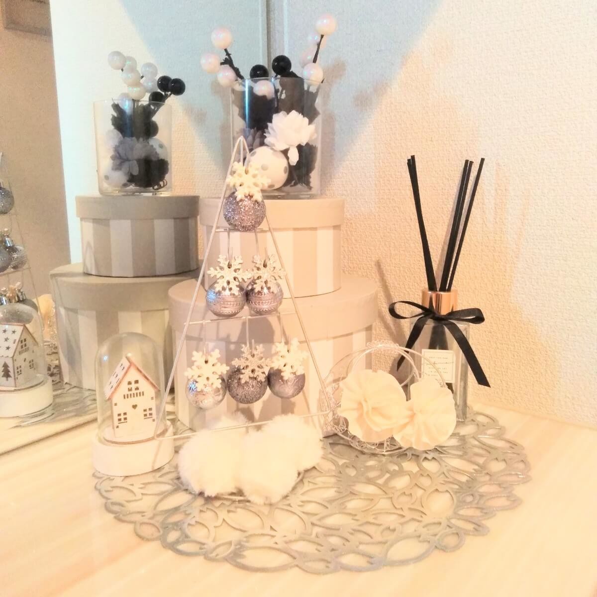 もちろんディスプレイのテーマは「ALL100均でモノトーンクリスマス」。