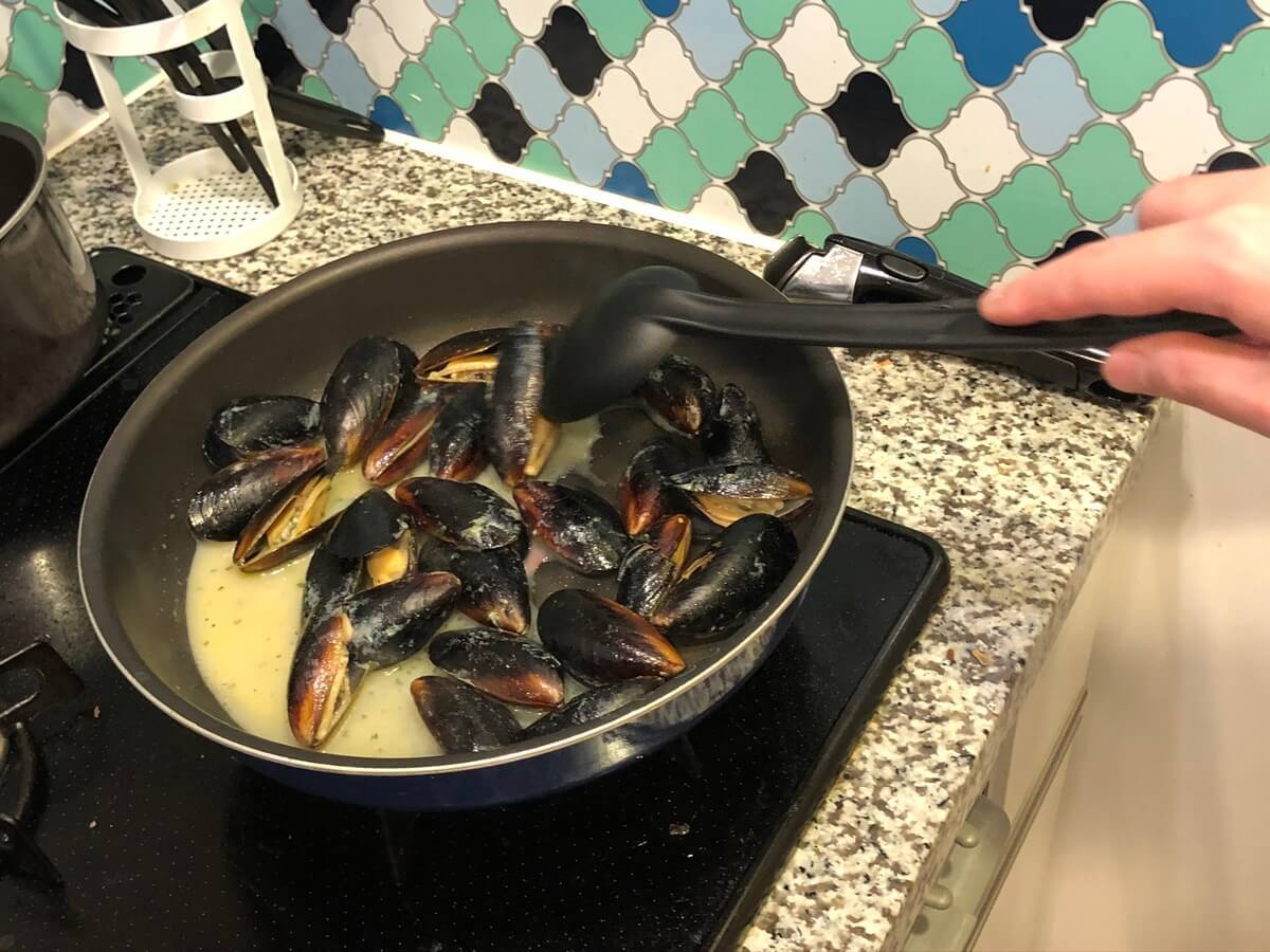 だいたい25個ムール貝が入っていて、電子レンジかフライパンで温めるだけの簡単調理です。ただ、私の周りでは、フライパンで温めた方が美味しいというウワサがあり、私は毎回フライパンで調理しています。