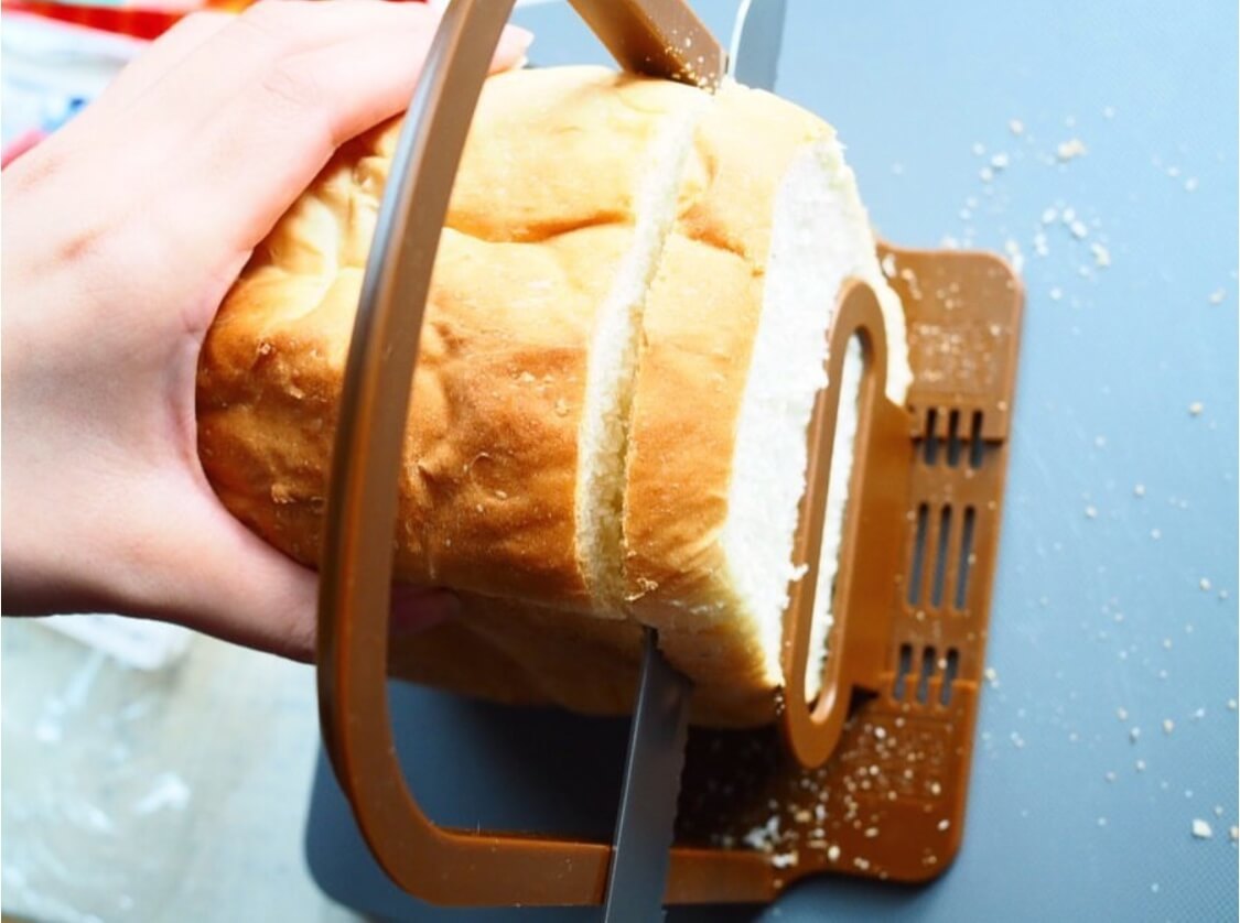 ホームベーカリーで焼いたパンを切りたい厚さで均等にカットすることができます♪