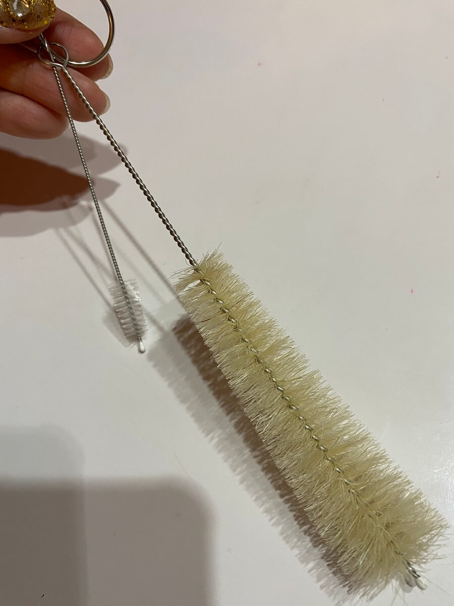 こちらは先ほどのブラシとは違い、細い部分のお掃除に最適。 わが家では、やかんの注ぎ口部分に使っています。
